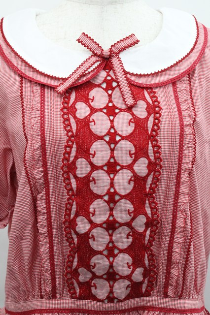 PINK HOUSE / チェリーレース使いギンガムチェックブラウス 赤 I-25-12-27-063-LO-BL-SA-ZI