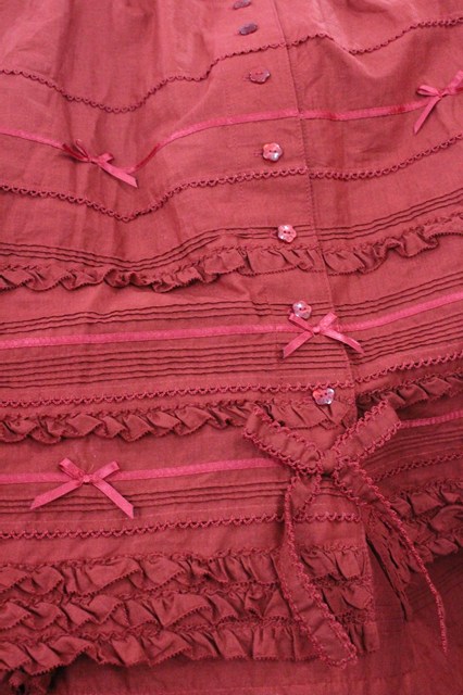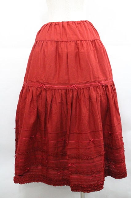 PINK HOUSE / サテンリボンいっぱいローンティアードスカート 赤 I-25-12-27-111-LO-SK-SA-ZI