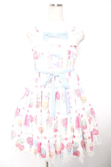 Angelic Pretty / Sugar Candy Shopジャンパースカート 白 Y-25-12-28-005-AP-OP-SZ-ZY