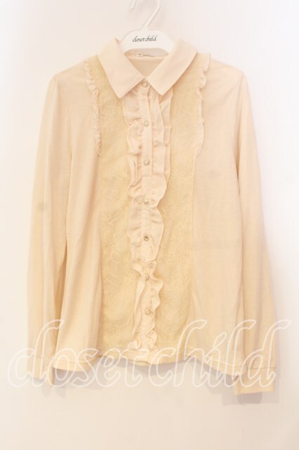 axes femme / フリル襟付きカットソー M キナリ O-25-12-29-061-AX-TO-OW-OS