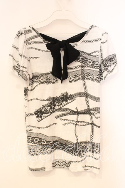 Emily Temple cute / バックリボン付レースプリントカットソー グレー O-25-12-29-040-ET-TO-OW-OS [2100080000067064-O-25-12-29-040-ET-TO-OW-OS]