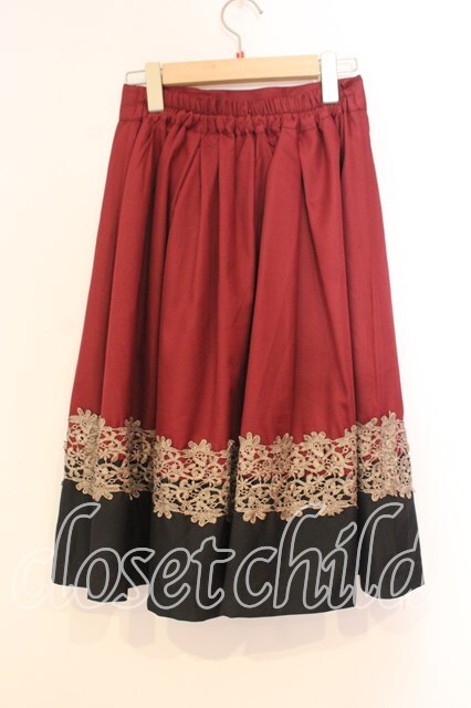 axes femme / バイカラーレース使いスカート ワイン×クロ O-25-12-29-075-AX-SK-IG-OS