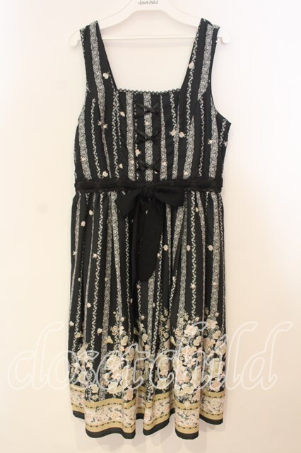 axes femme / バラパネル柄ワンピース M クロ O-25-12-29-021-AX-OP-OW-OS