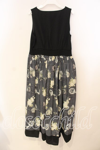 axes femme / クラシック柄ロングワンピース M クロ×グレー O-25-12-29-016-AX-OP-OW-OS