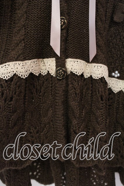 axes femme kawaii / ファー付きニットポンチョ M ブラウン O-25-12-29-047-AX-CO-OW-OS