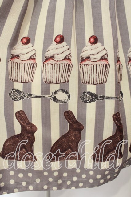 Emily Temple cute classic / うさぎチョコストライプワンピース グレー O-25-12-29-010-ET-OP-OW-OS [2100080000067050-O-25-12-29-010-ET-OP-OW-OS]