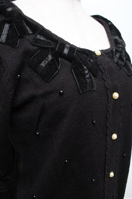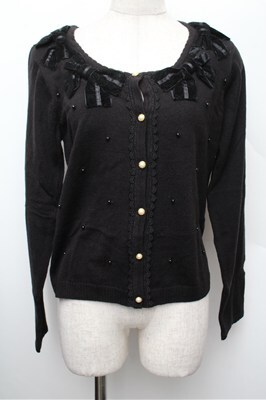axes femme / ベロアリボンパールカーディガン 黒 S-25-12-28-012-AX-TO-HR-ZS