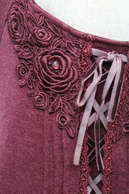 axes femme / カットソー裾フロッキーチュニ ワイン S-25-12-28-014-AX-OP-HR-ZS