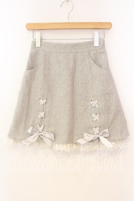 Secret Honey / フロントレースアップスカート グレー ヘリンボーン O-25-12-30-056-CA-SK-IG-OS