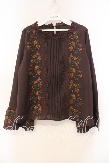 axes femme / ミュルーズ染織美術館コラボ/刺繍入りフレア袖ブラウス M ブラウン O-25-12-30-084-AX-BL-IG-OS [2100080000070043-O-25-12-30-084-AX-BL-IG-OS]