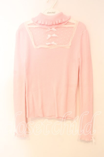 Swankiss / ドットチュールデコルテテレコタートルネックトップス F ピンク O-25-12-30-011-CA-TO-YM-OS