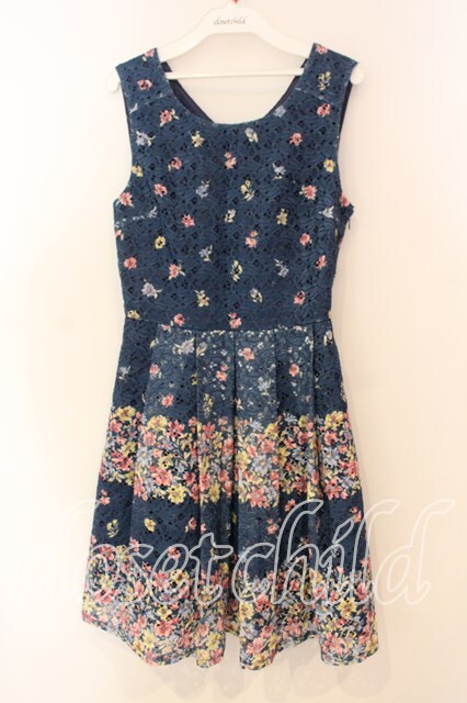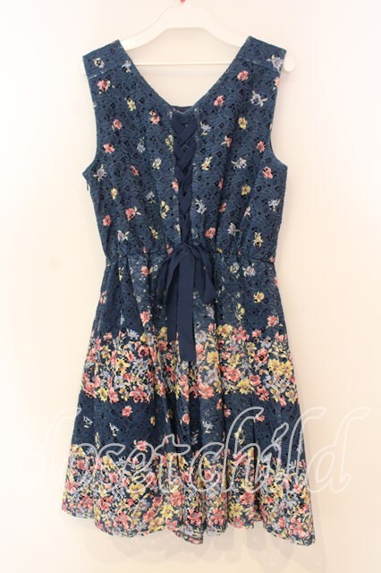 LIZ LISA / レースボーダーフラワーワンピース ネイビー O-25-12-30-037-LO-OP-IG-OS [2100080000069820-O-25-12-30-037-LO-OP-IG-OS]