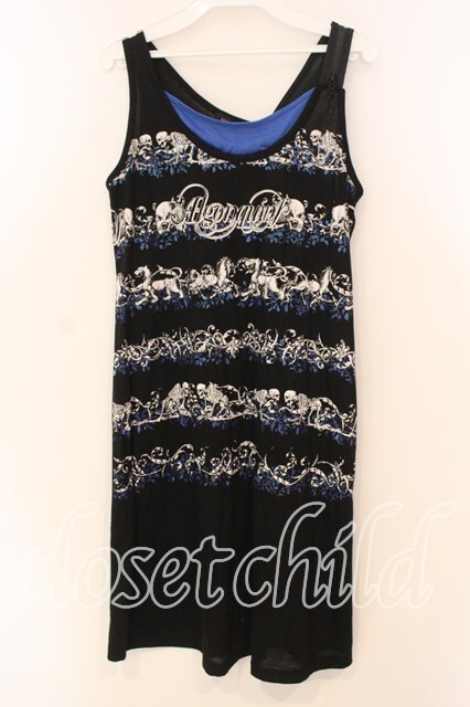 ALGONQUINS / スカルボーダーロングタンクトップ ブラック×ブルー×ホワイト O-25-12-30-043-AL-TO-IG-OS