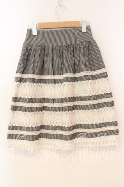 Jane Marple / ストライプレース配色スカート クロ×シロ O-25-12-30-019-JM-SK-IG-OS