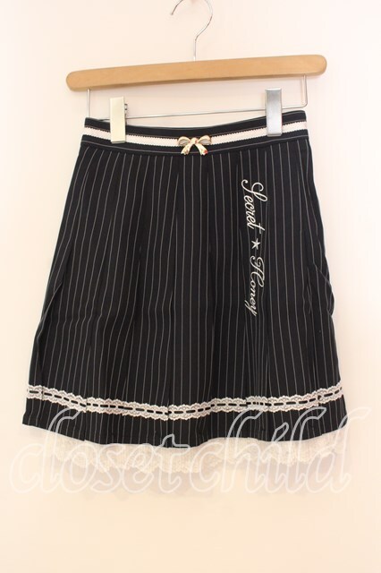Secret Honey / ロゴ刺繍ストライプスカート 2 ブラックxシロ O-25-12-30-015-CA-SK-YM-OS
