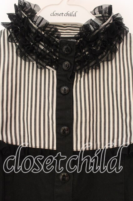 BPN / ストライプヨークブラウス ブラック×オフホワイト O-25-12-30-080-GO-BL-IG-OS