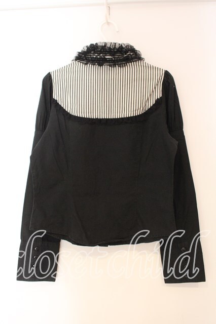 BPN / ストライプヨークブラウス ブラック×オフホワイト O-25-12-30-080-GO-BL-IG-OS [2100080000070037-O-25-12-30-080-GO-BL-IG-OS]