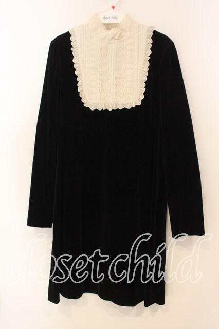 Jane Marple / レースヨークカラー付き別珍ワンピース M クロ×生成り O-25-12-30-018-JM-OP-IG-OS [2100080000069905-O-25-12-30-018-JM-OP-IG-OS]