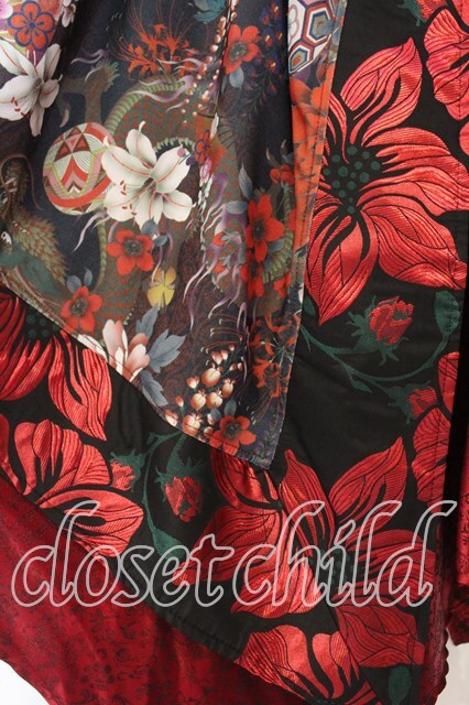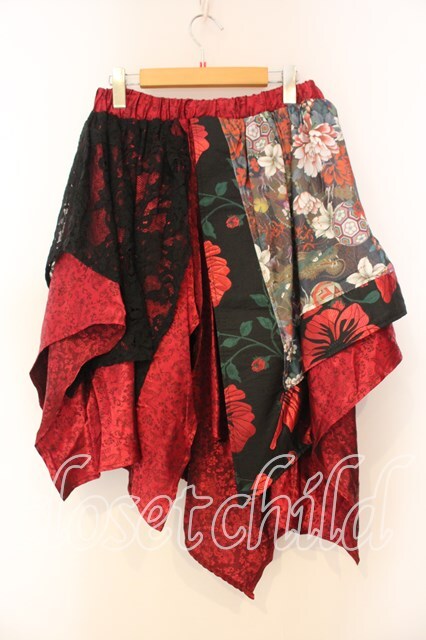 Qutie Frash / 和柄アシメスカート レッド O-25-12-30-072-QU-SK-OW-OS [2100080000069911-O-25-12-30-072-QU-SK-OW-OS]