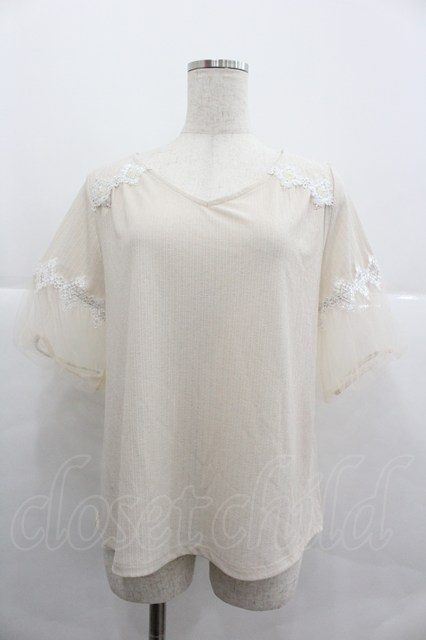 axes femme / 袖チュールビジュー使いプルオーバー M キナリ I-25-12-29-011-AX-TO-SA-ZI