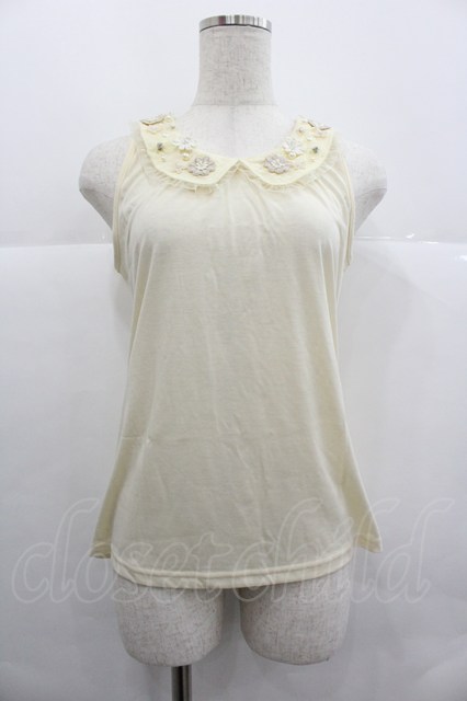 axes femme / お花モチーフ襟付タンク M キナリ I-25-12-29-030-AX-TO-SA-ZI