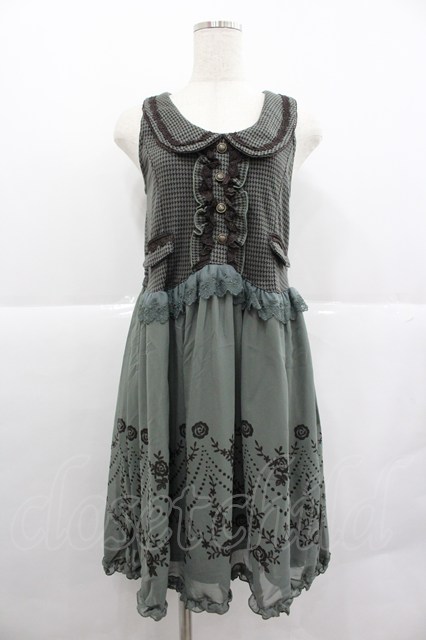 axes femme / 千鳥ベストレイヤード風チュニック M グリーン I-25-12-29-083-AX-OP-SA-ZI