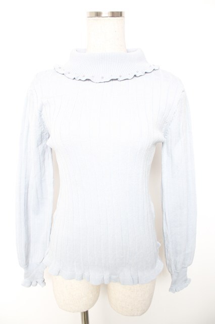axes femme / タートルラメニットプルオーバー M サックス Y-26-01-01-035-AX-TO-SZ-ZY