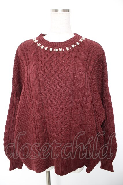 axes femme / かぎ編みニットトップス M ワイン Y-26-01-01-039-AX-TO-SZ-ZY