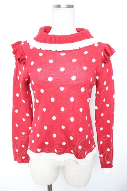 axes femme kawaii / ハートドットニットプル M アカ Y-26-01-01-047-AX-TO-SZ-ZY [2100070000040924-Y-26-01-01-047-AX-TO-SZ-ZY]