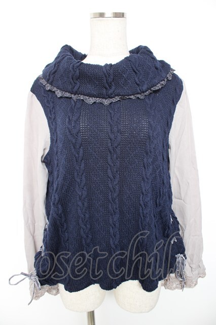 axes femme / サイド編み上げニットトップス M 紺 Y-26-01-01-063-AX-TO-SZ-ZY [2100070000041126-Y-26-01-01-063-AX-TO-SZ-ZY]