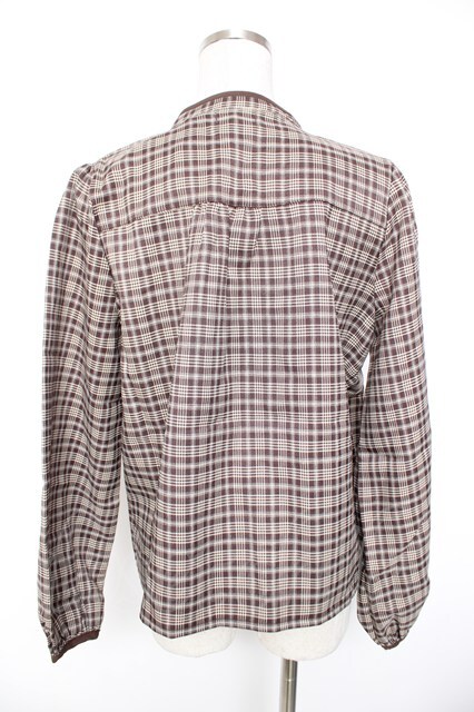axes femme POETIQUE / レース襟チェックレトロブラウス 茶 Y-26-01-01-065-AX-BL-SZ-ZY
