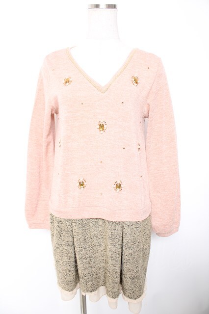 axes femme / ビジュー付きニットワンピース M ピンク Y-26-01-01-068-AX-OP-SZ-ZY [2100070000041108-Y-26-01-01-068-AX-OP-SZ-ZY]