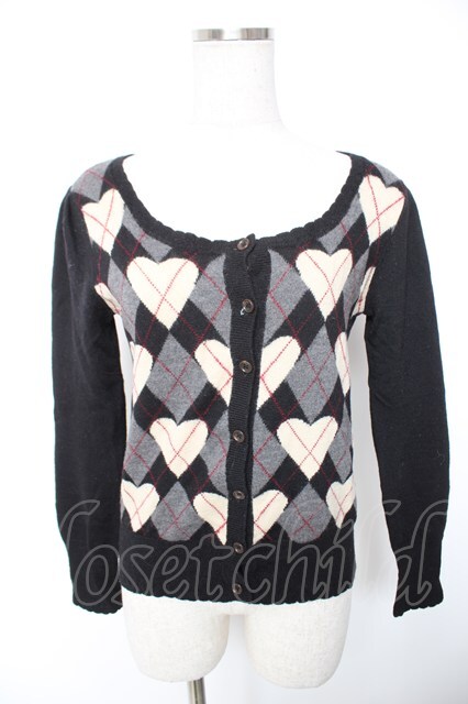 Jane Marple / ハートアーガイルのカーディガン M 黒 Y-26-01-01-078-JM-TO-SZ-ZY [2100070000040704-Y-26-01-01-078-JM-TO-SZ-ZY]