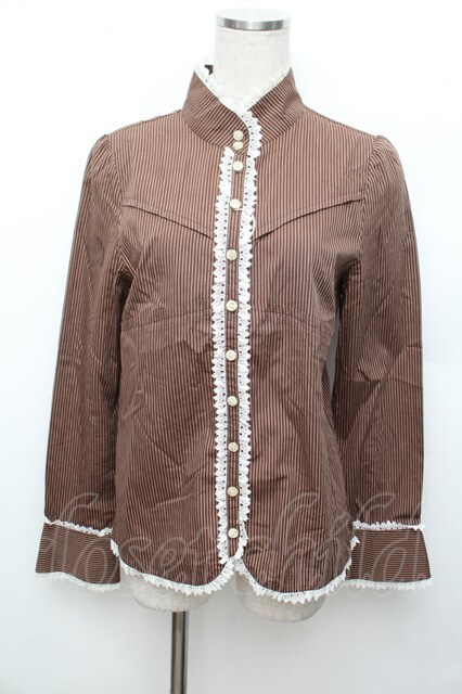BETTY'S BLUE / ストライプブラウス ブラウン S-25-12-30-025-LO-TO-AS-ZS