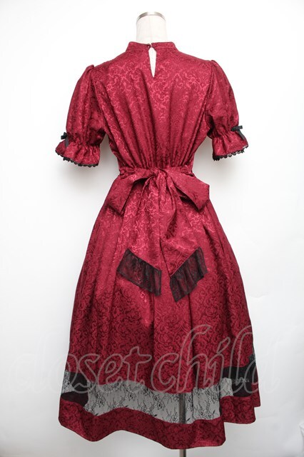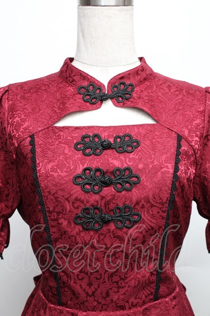 axes femme kawaii / チャイナ釦ジャガードワンピ ワイン S-25-12-30-045-AX-OP-AS-ZS