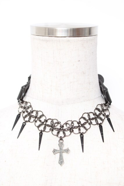 Moi-meme-Moitie / クロスロゴスパイクチェーンチョーカー 黒 Y-26-01-05-005-MO-AC-SZ-ZY