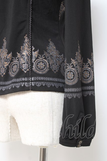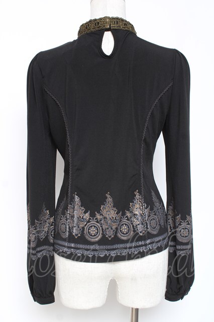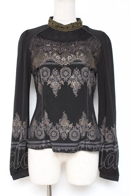 Rozen Kavalier / レース切替プリントトップス 黒 Y-26-01-05-063-OO-TO-SZ-ZY