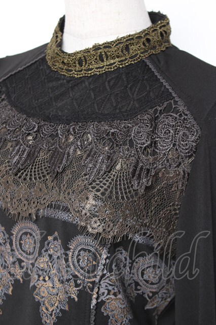 Rozen Kavalier / レース切替プリントトップス 黒 Y-26-01-05-063-OO-TO-SZ-ZY [2100070000057966-Y-26-01-05-063-OO-TO-SZ-ZY]