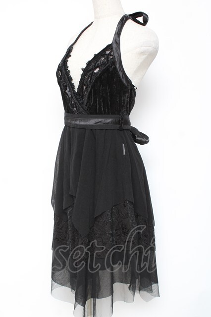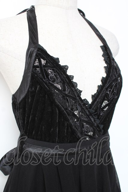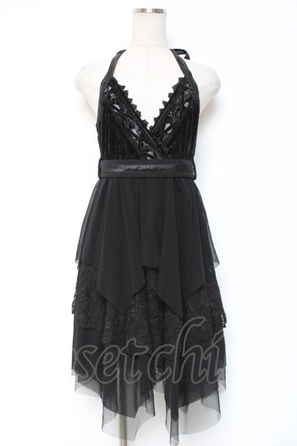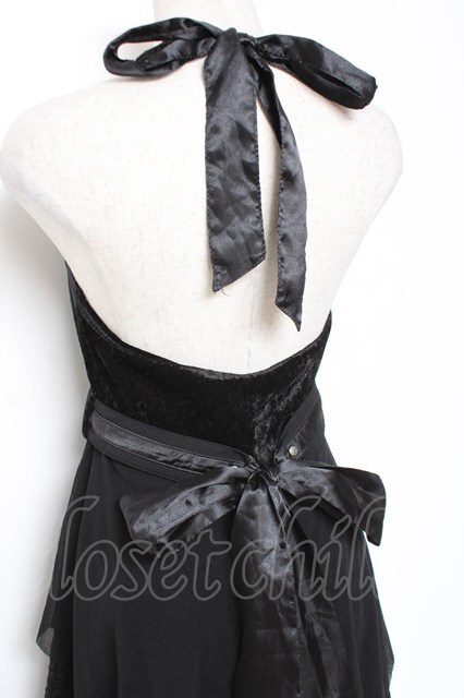 Ozz oneste / 薔薇刺繍ベロアホルターワンピース 黒 Y-26-01-05-068-OO-OP-SZ-ZY [2100070000057859-Y-26-01-05-068-OO-OP-SZ-ZY]