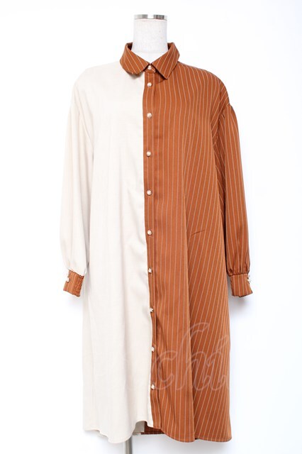 axes femme / ストライプ切替配色シャツワンピース F ベージュ Y-26-01-05-087-AX-OP-SZ-ZY