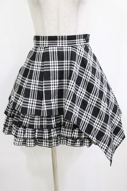 PEACE NOW / チェックアシメフリルスカート ブラック H-26-01-09-1011-PU-SK-KB-ZH
