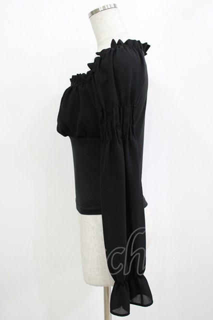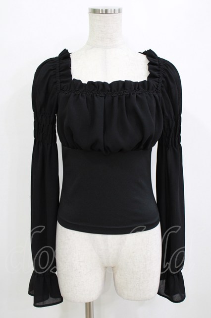Moi-meme-Moitie / ジョーゼットギャザーカットソー ブラック H-26-01-09-1047-MO-BL-KB-ZH [2100030000082591-H-26-01-09-1047-MO-BL-KB-ZH]