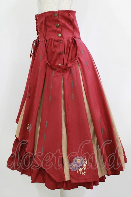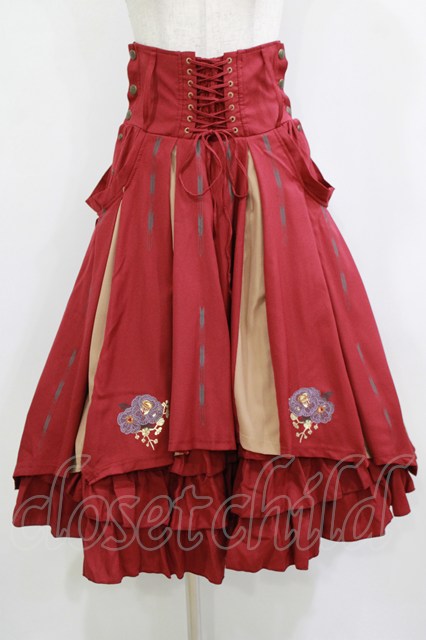 Ozz oneste / 椿刺繍スカート エンジ H-26-01-09-1006-OO-SK-KB-ZH [2100030000082640-H-26-01-09-1006-OO-SK-KB-ZH]