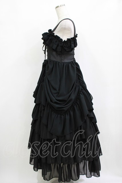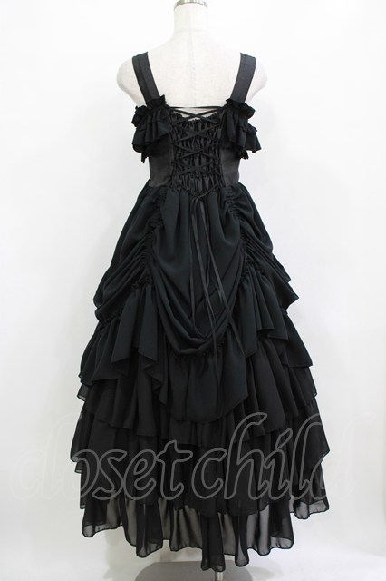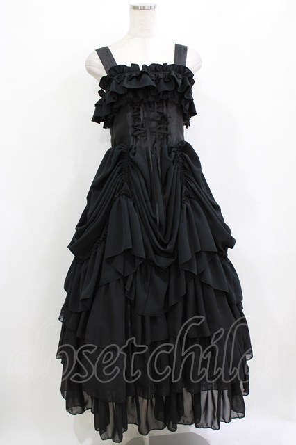 ATELIER PIERROT / ロングバッスルジャンパースカート ブラック H-26-01-09-1004-EL-OP-KB-ZH
