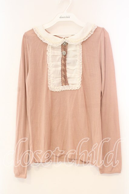 axes femme / 衿付きブロッキングプルオーバー M ピンク O-26-01-05-067-AX-TO-OW-OS