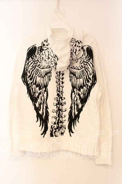 GLAD NEWS / ボーンウイングプリントパーカー ホワイト O-26-01-05-087-GL-TO-YM-OS