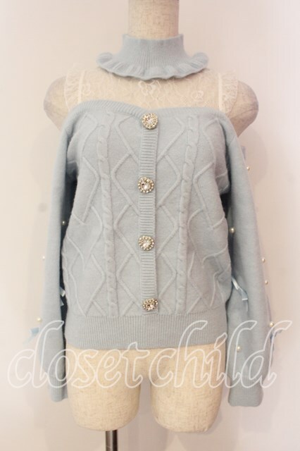 Ank Rouge / パールストラップオフショルレースアップニット M サックス O-26-01-05-015-CA-TO-OW-ZT0107X