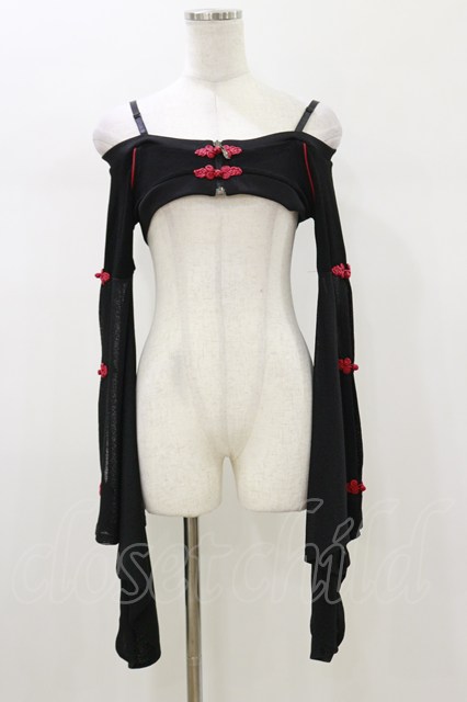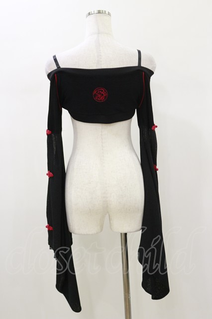Qutie Frash / 着物オフショルショートカーデ 黒×赤 H-26-01-11-033-QU-TO-KB-ZH [2100030000072991-H-26-01-11-033-QU-TO-KB-ZH]