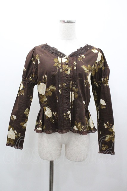 PINK HOUSE / 薔薇柄長袖ブラウス ブラウン I-26-01-04-007-LO-BL-SA-ZI [2100060000048660-I-26-01-04-007-LO-BL-SA-ZI]