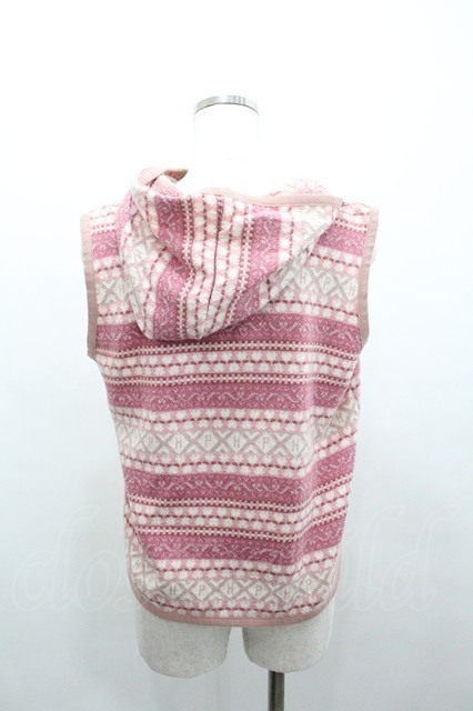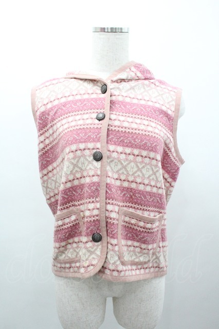 PINK HOUSE / 総柄ボーダー風デザインフードベスト M ピンクX白 I-26-01-04-013-LO-TO-SA-ZI